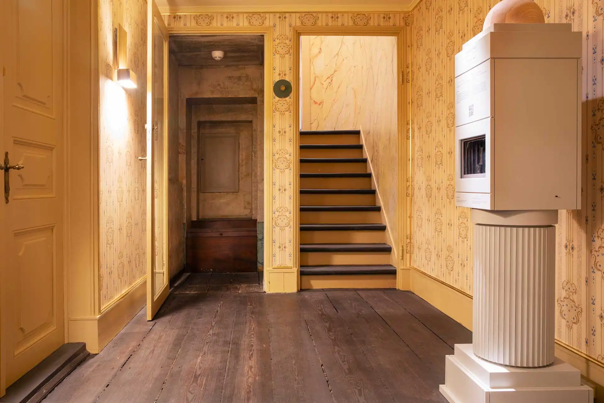 Ankomstområde i øjenhøjde og velbevaret, originalt interiør