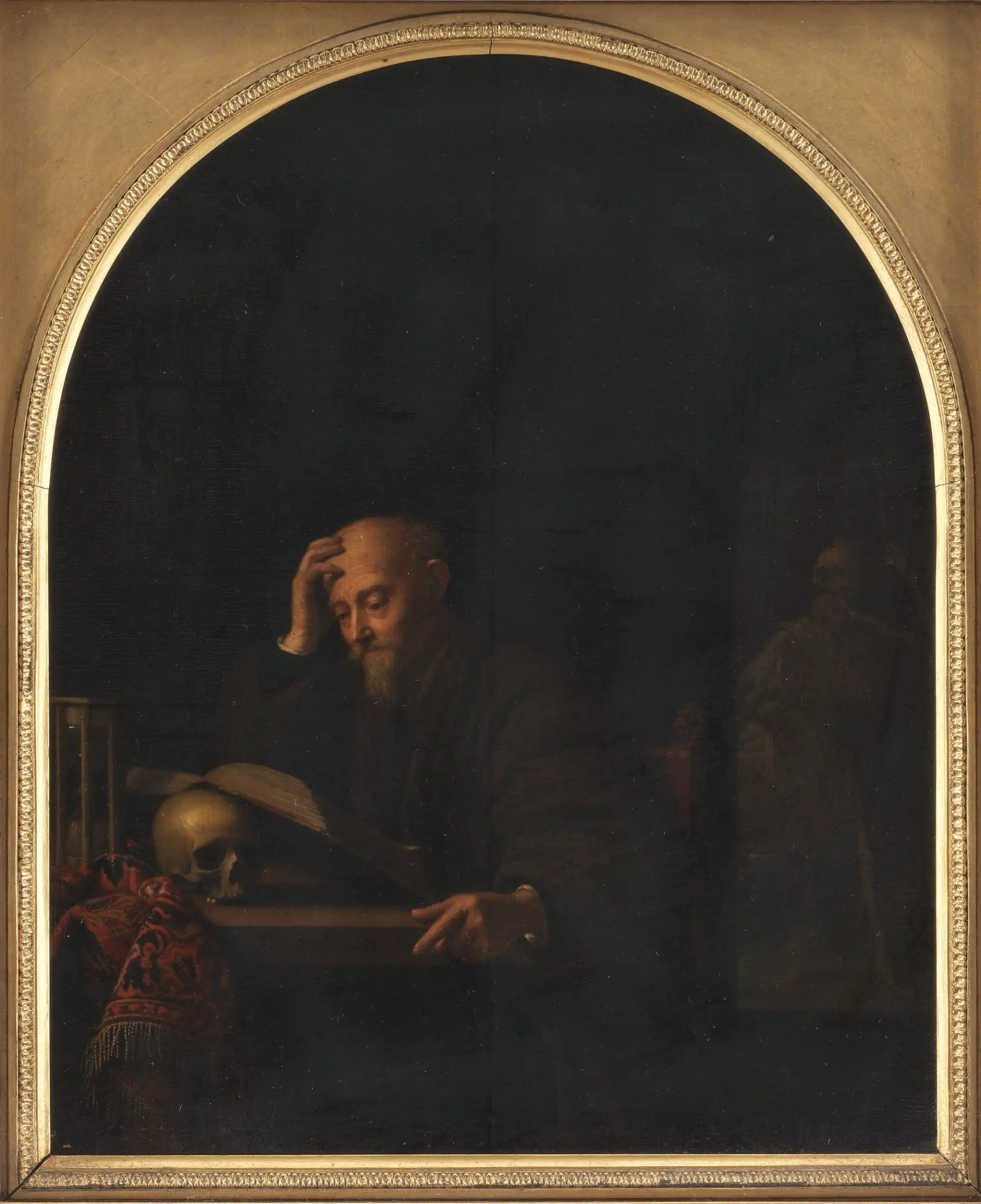 Toussaint Gelton, Den lærde og Døden, 1671-1680, Olie på træ, 30.5 x 24.5 cm, KMSsp824, Statens Museum for Kunst, open.smk.dk, public domain